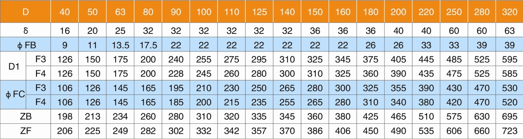 F2=尾部長方法蘭(用于缸徑D≤125);