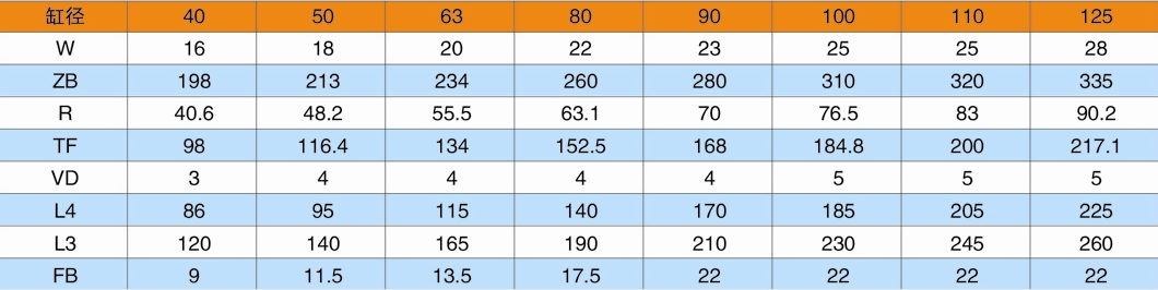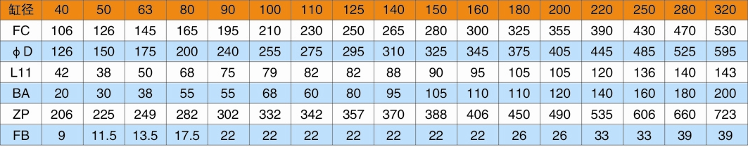 F1=頭部長方法蘭(用于缸徑D≤125);