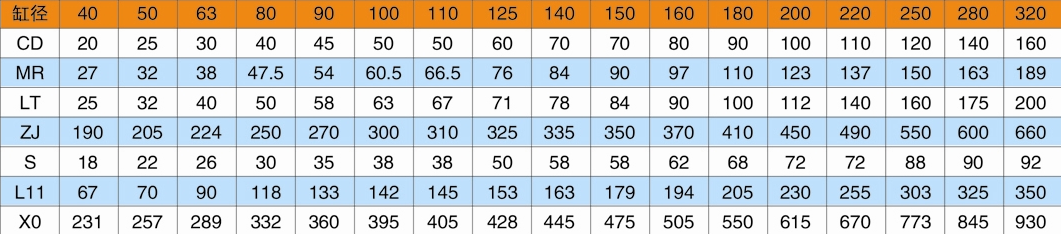 D/d:缸徑mm/活塞桿徑mm